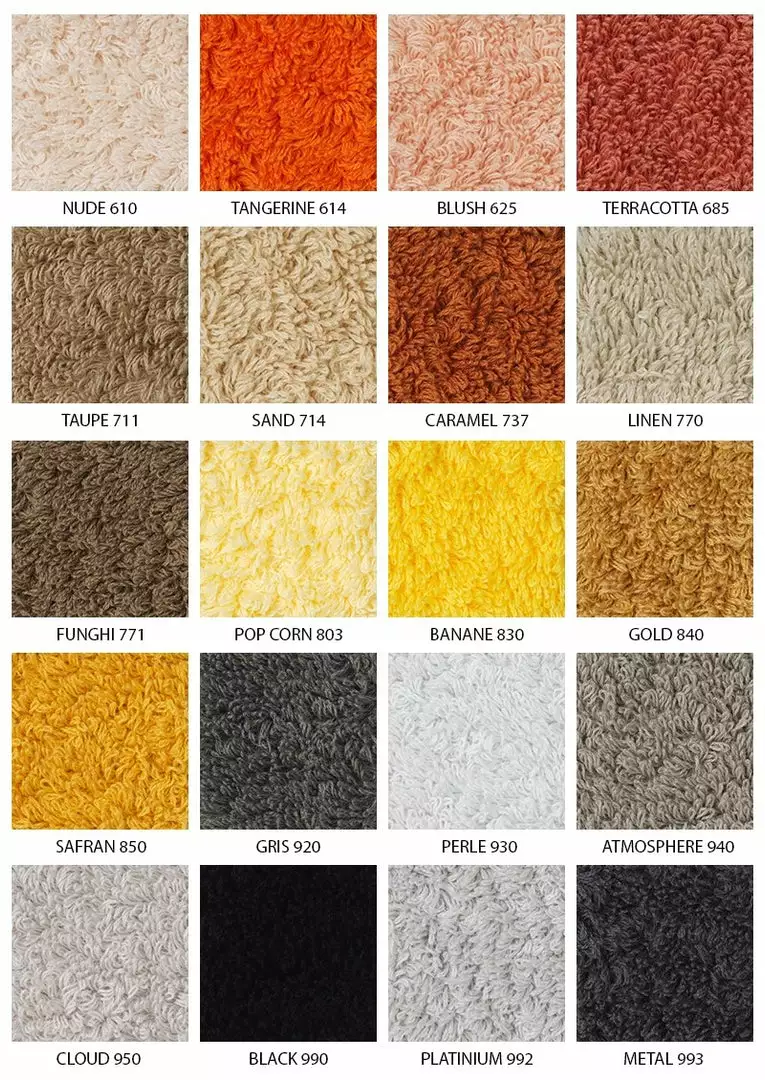The collection is available in 10 sizes: Mitt (7″x9″), Wash (12″x12″), Guest (12″x20″), Guest Euro (17″x24″), Hand (17″x30″), Hand Euro (21″x39″), Hand Euro (23″x43″), Bath (28″x54″), Sheet Euro (39″x59″), Sheet (40″x72″).
