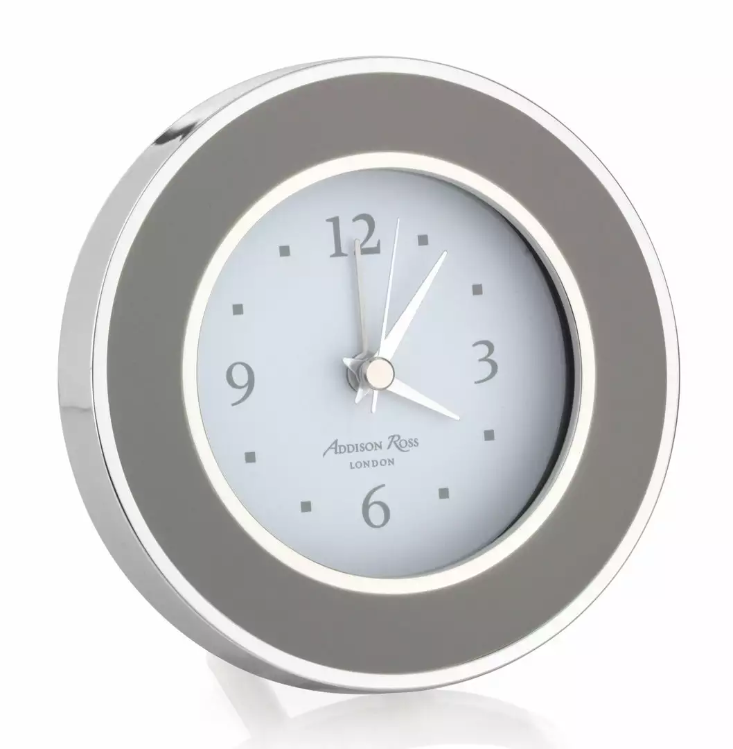 Our taupe enamel alarm clock beautifully compliments our enamel frames, complete with an alarm function, this clock is ideal for a bedside table or desk.