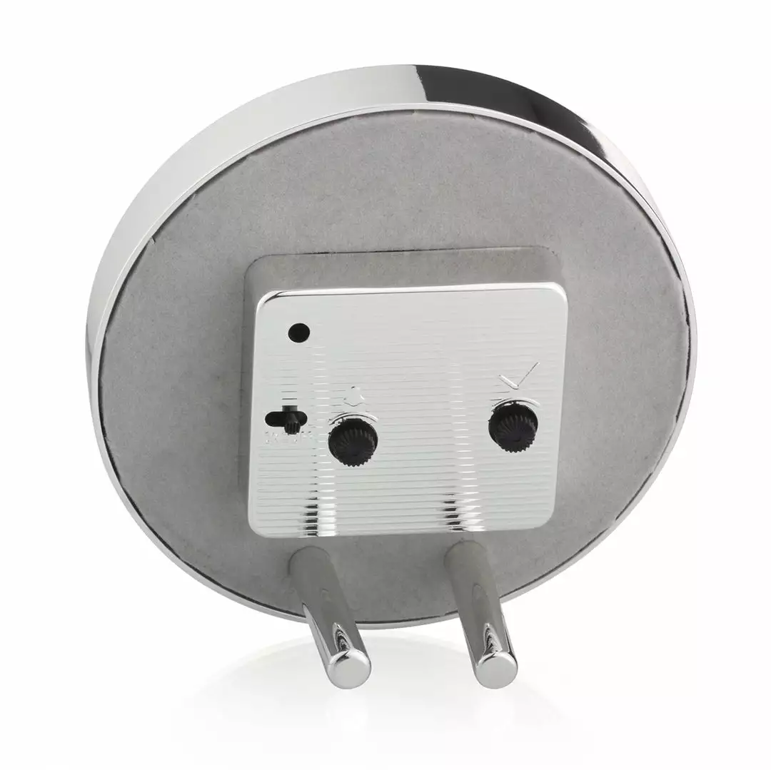 Beautifully finished, our faux polished grey horn collection is finished in silver plate with a luxury dove grey velvet back. This gorgeous desk or bedside round clock has an alarm and the movement is encased within a removable silver cover. The clock comes with 2 screw in legs.