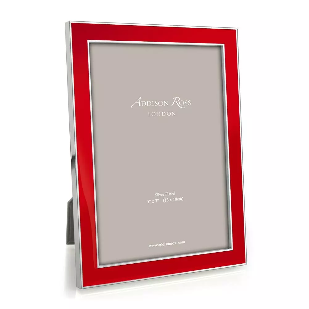 Add a pop of color with this red frame. Made of enamel and silver plate.