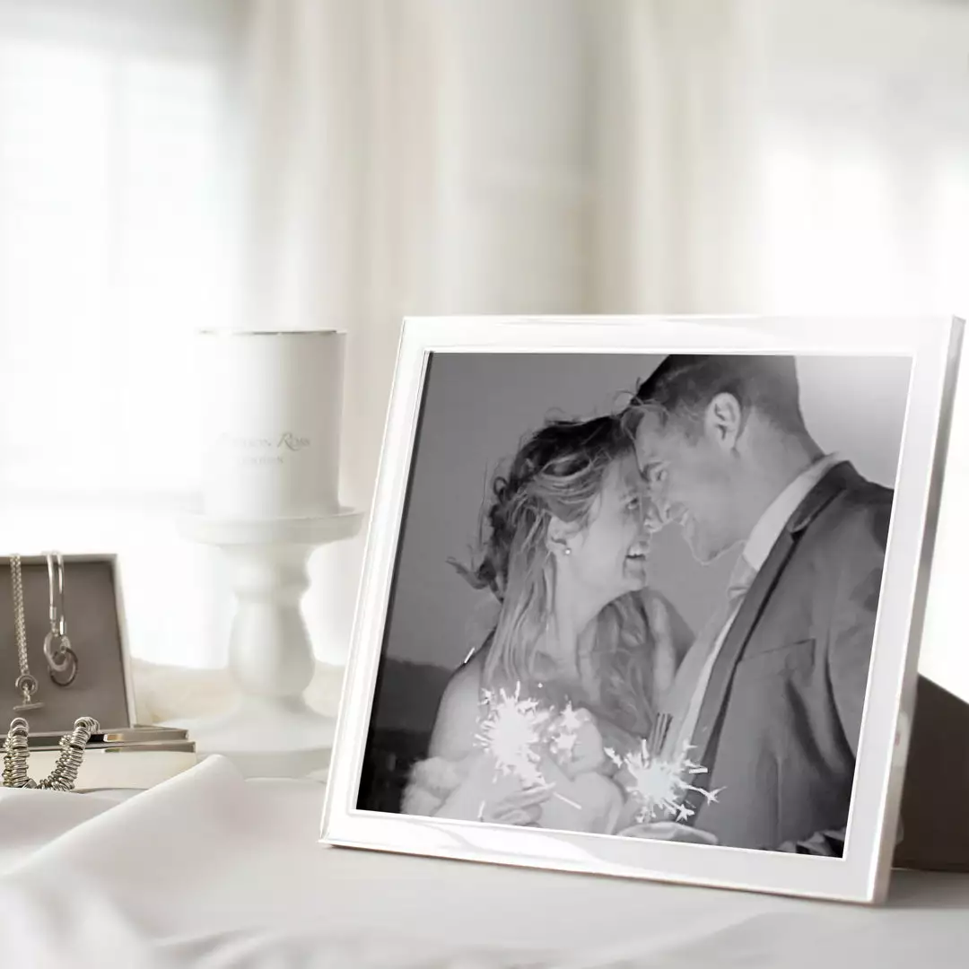 This white enamel and silver frame sets off both color and black and white photos beautifully. Very popular for wedding presents as it will go with any colour scheme. Group a collection of white frames together to create a beautifully tasteful display.