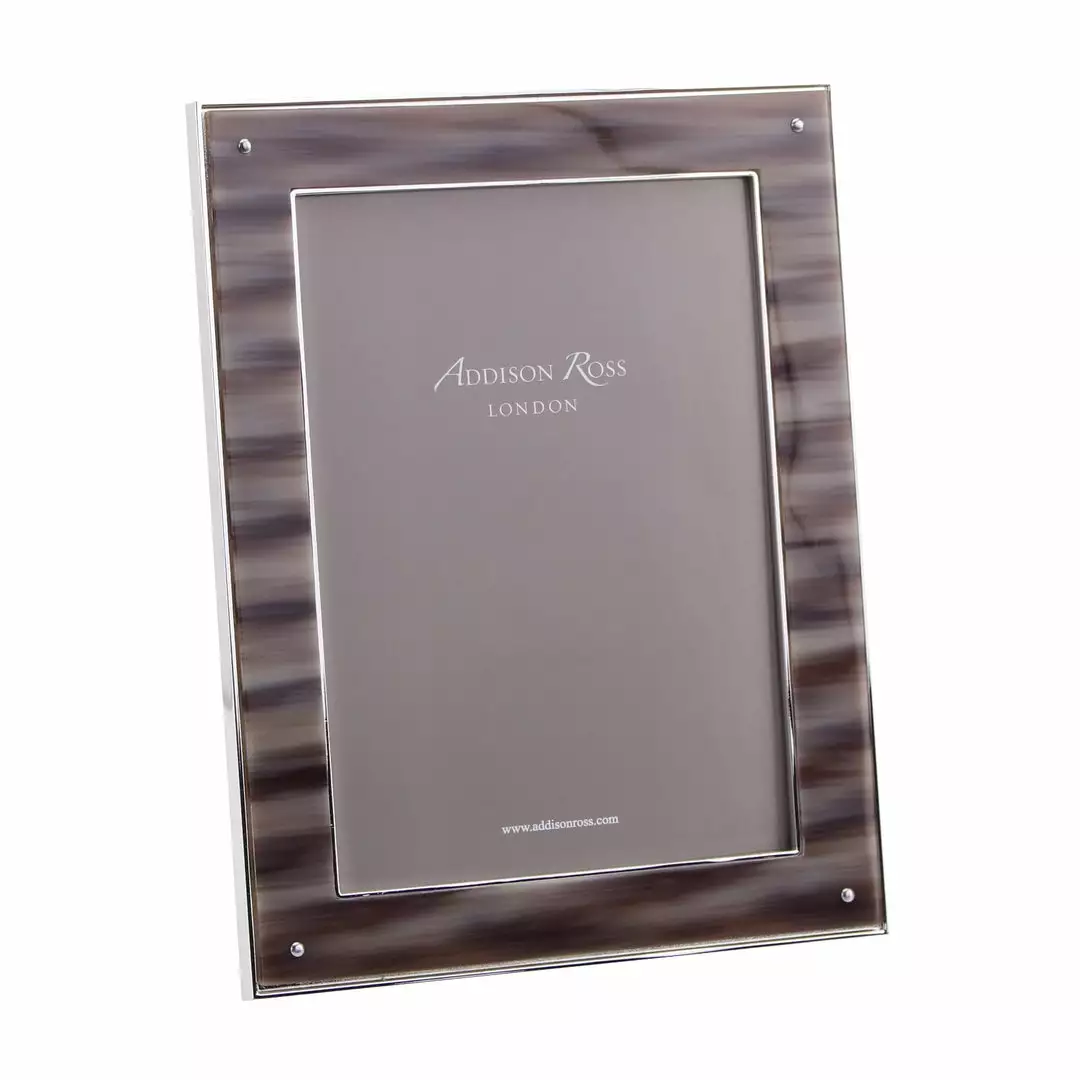 Beautifully finished, our faux polished grey horn frame is finished in silver plate with a luxury dove grey velvet back.
