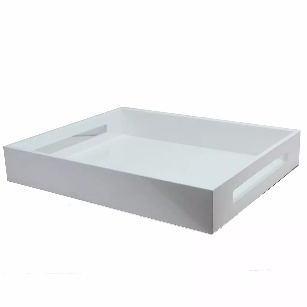 Our stunning 16 x 14″ Lacquered White Tray features twenty coats of high gloss lacquer, hand-polished between each coat and complements any stylish interior.
