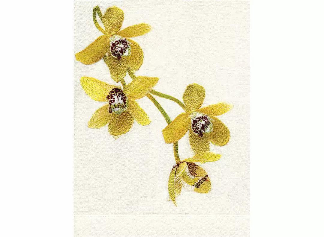 A super way to welcome your guests and dress up a powder room. Orchid flowers are embroidered on 100% Roma terry guest towels.
