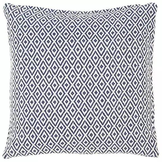 This eco-friendly indoor/outdoor decorative pillow, featuring a bold diamond pattern in preppy navy and white, packs a graphic punch on the porch or throughout the home.