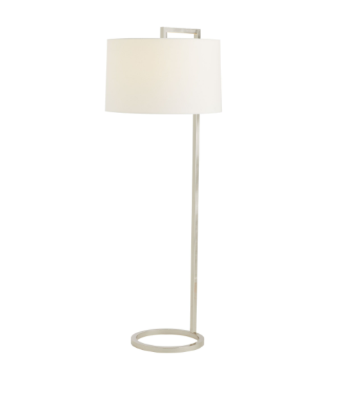This simple, but stylish Polished Nickel Floor Lamp is topped with an off-white crinkled linen shade. It has full range dimmer.
