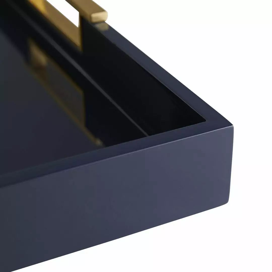 Sometimes a tray is just a tray. Sometimes it’s an exceptionally remarkable work of luxury and style. In our Parker tray, you’ll find it’s the latter. In order to get this rich, impressive lacquer look, makers apply several layers of navy lacquer on top of wood before the final coat is polished to a reflective sheen, so it’s incredibly durable, waterproof and beautiful. The piece is finished with solid polished brass handles to elevate the look even further.