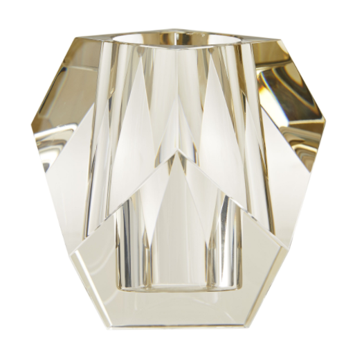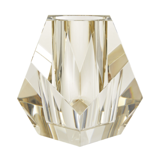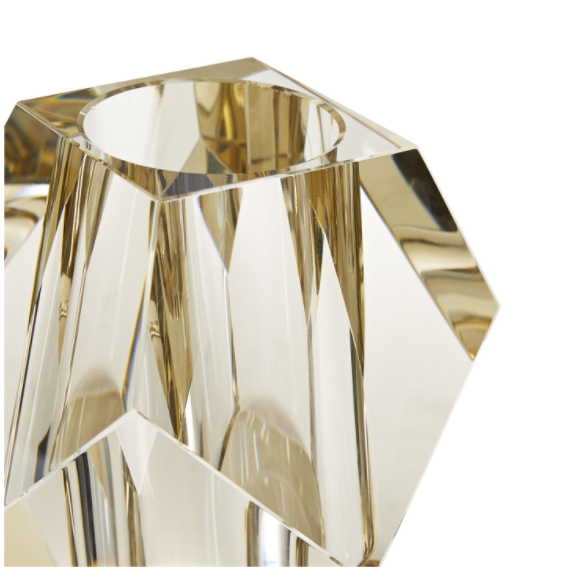 With an appearnce akin to a diamond, the Gemma Vase’s Champagne crystal creates an arresting blend of elements and colors. The facets, sharp corners, and edges of the vase are softened by its contents.
