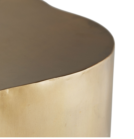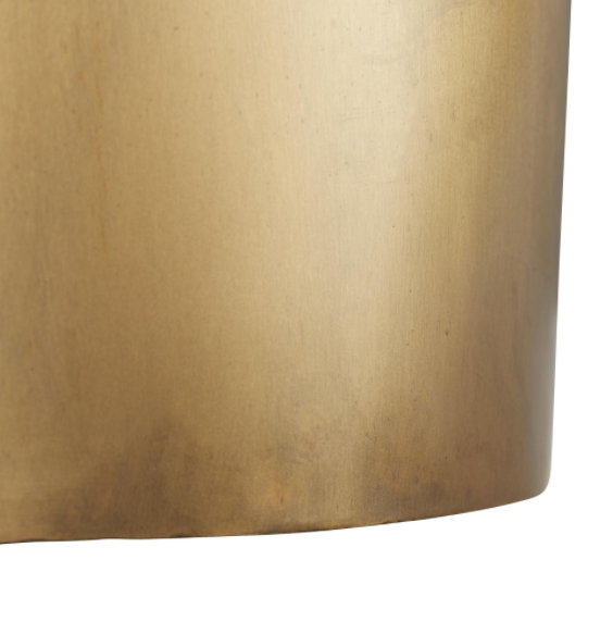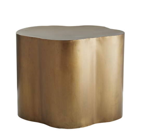 We love the irregular shape of this Antique Brass low Side Table. Try it next to a chaise or armless chair, or use two in front of a sofa or sectional. Can also be turned upside down as a planter.