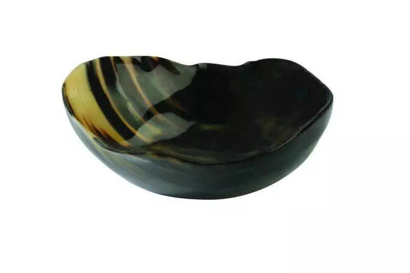 This solid horn bowl has a subtle pattern. Functional as a salad bowl or as a decorative accessory. Not suitable for hot liquids.