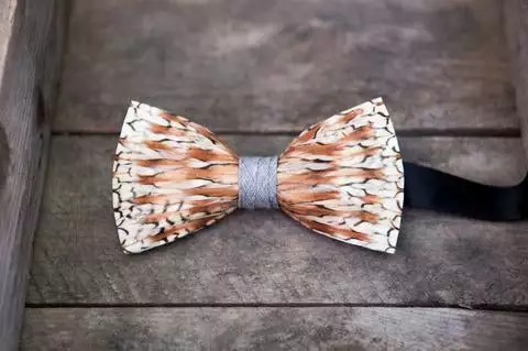 - Feathers for bow ties are hand-selected, giving each finished piece unique coloring.