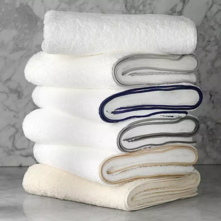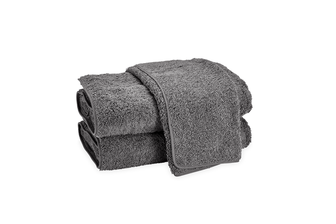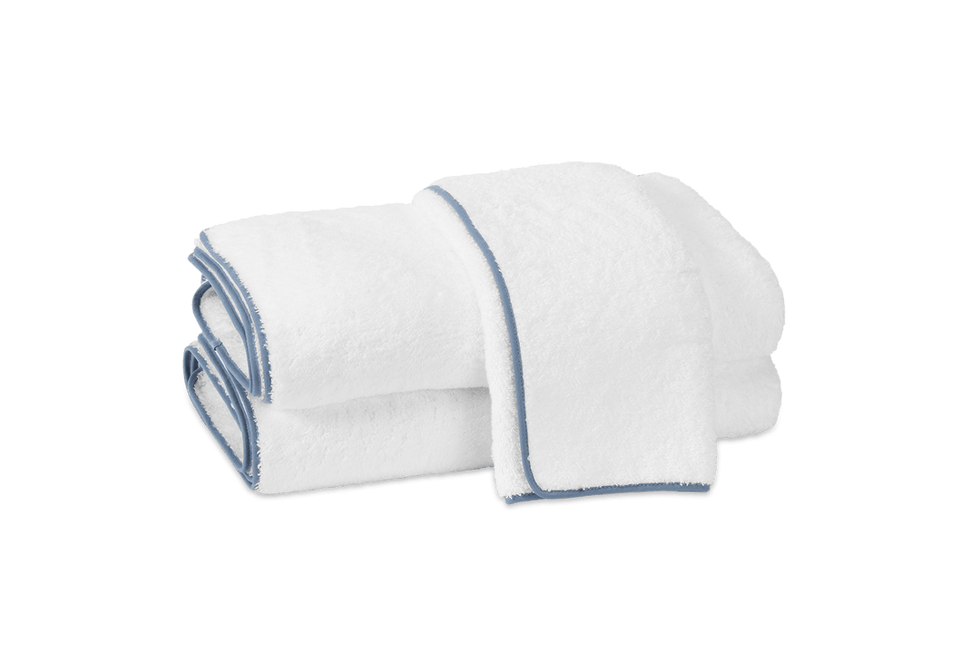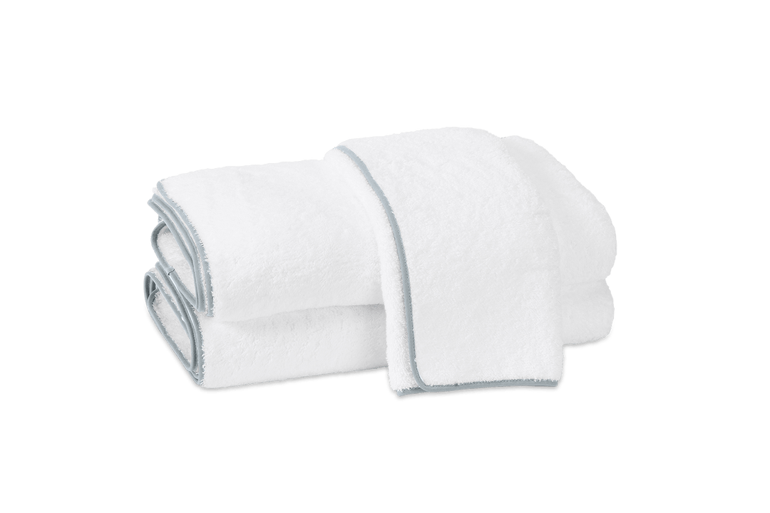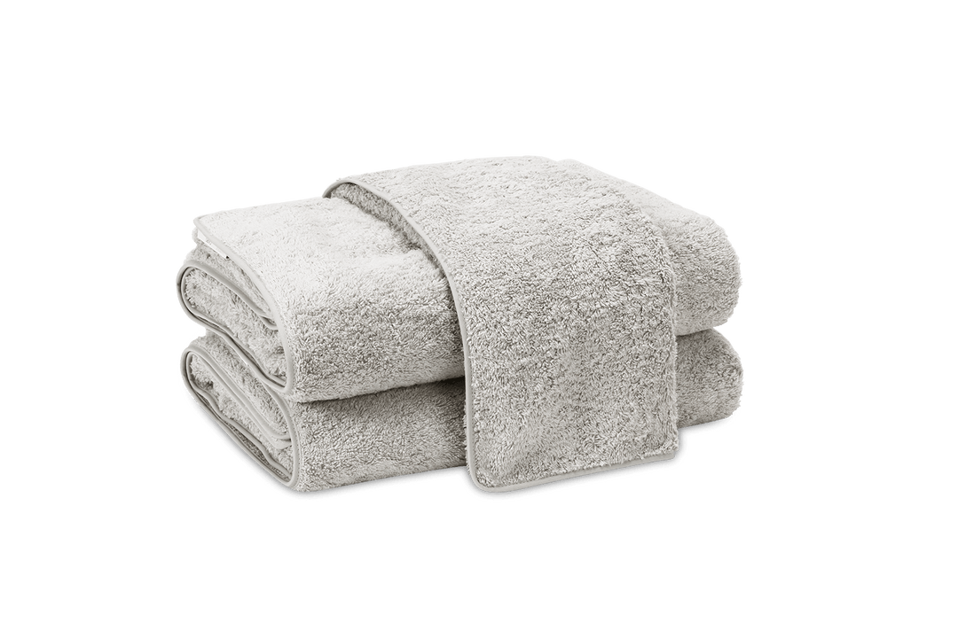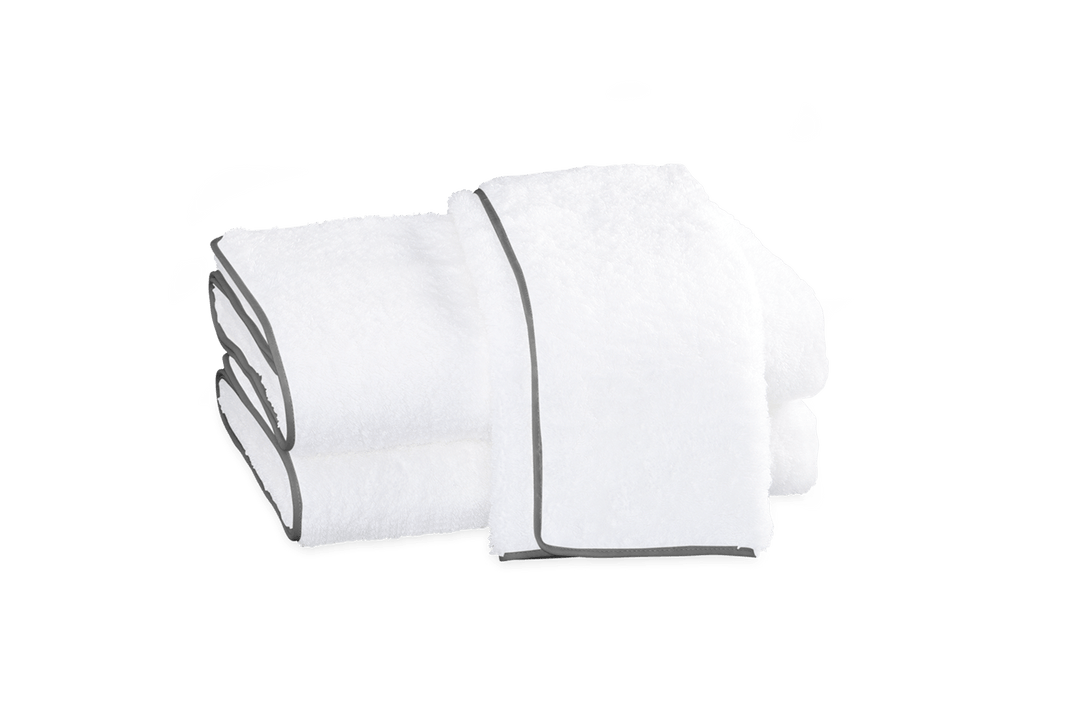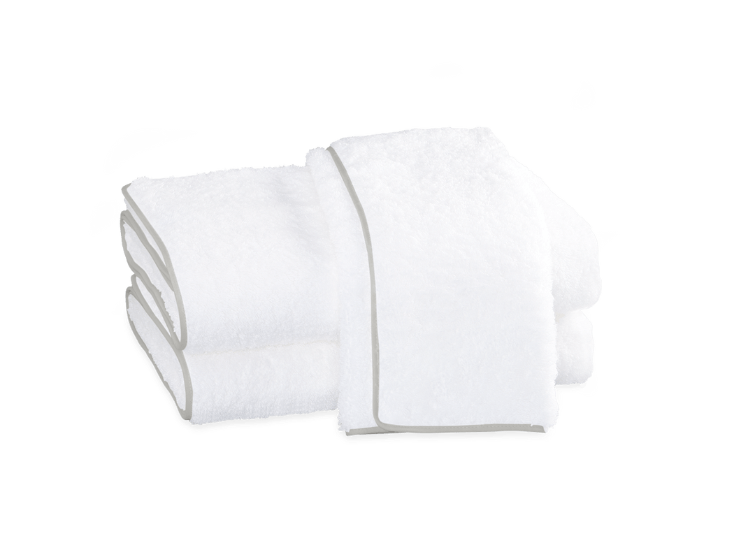 Accentuate the tranquil ambience of a truly luxurious bath experience with Matouk’s Signature Cairo long-staple cotton terry, accented with piping. Chose a from white towel with a pop of color of a tone on tone neutral. Available in Colors Azure, White, Silver, Navy, Ivory, Linen, Sand, Pearl or Smoke Gray.