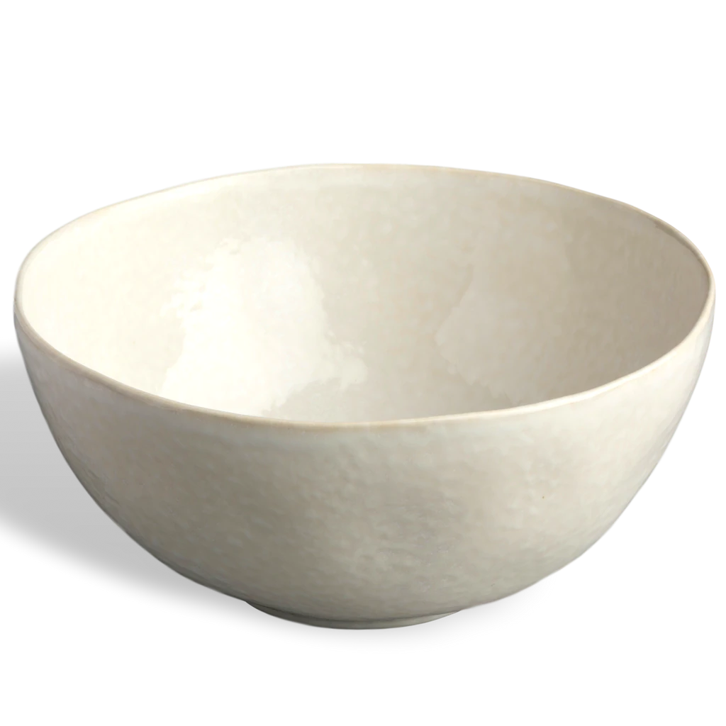 Cozina serving pieces have that “fit anywhere” look to complement any decor. This generously sized bowl can be the focal point in the kitchen, on the table or in the living room. Our custom white, softly sponged glaze gives it a casual but elegant look. Easily mixed and matched with other patterns. This large bowl is 10″ in diameter and about 5″ deep.