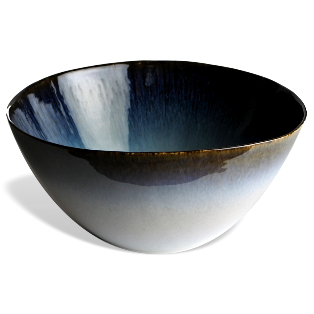 Cypress Grove adds a dramatic look to your home with the beauty of reactive glazes with stunning blues and browns. You’ll want to use this big serving bowl all over the house, one day holding fruit on the dining room table then holding the main course the next. 10″ in diameter and about 5″ deep.