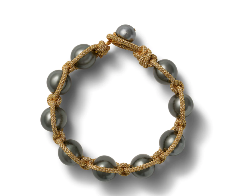 - woven and knotted with gold cord macramé