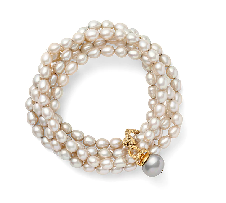 - pearl + gold detachable cord and button detail