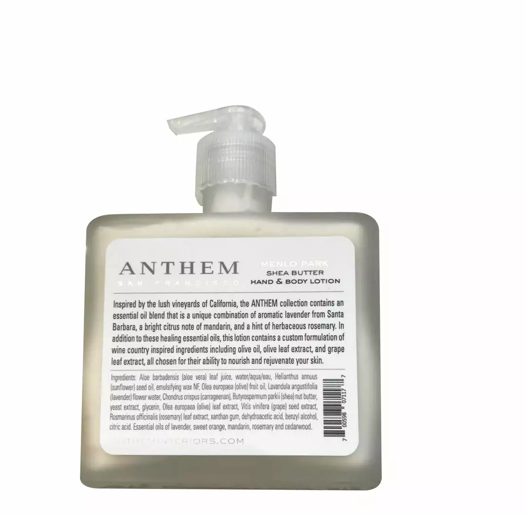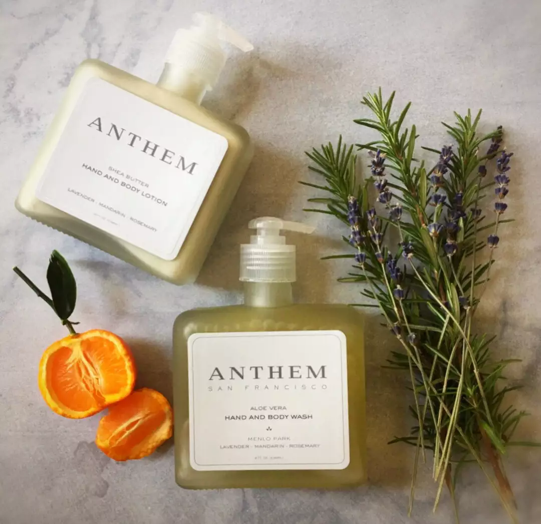 Inspired by the lush vineyards of California, the Anthem collection contains an essential oil blend that is a unique combination of aromatic lavender from Santa Barbara, a bright citrus note of mandarin, and a hint of herbaceous rosemary. In addition to these healing essential oils, this lotion contains a custom formulation of wine country inspired ingredients including olive oil. olive leaf extract and grape leaf extract, chosen for their ability to nourish and rejuvenate your skin.