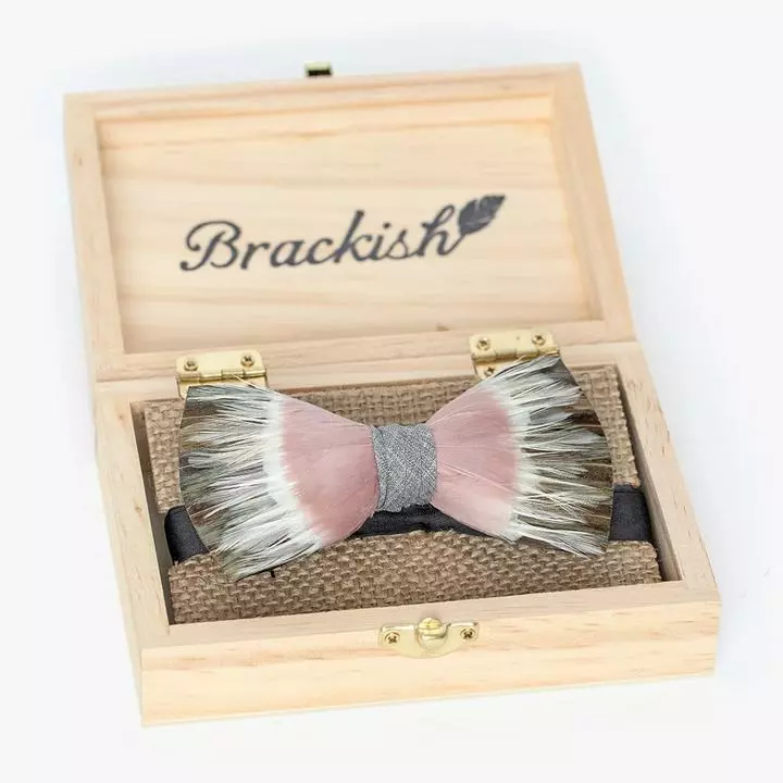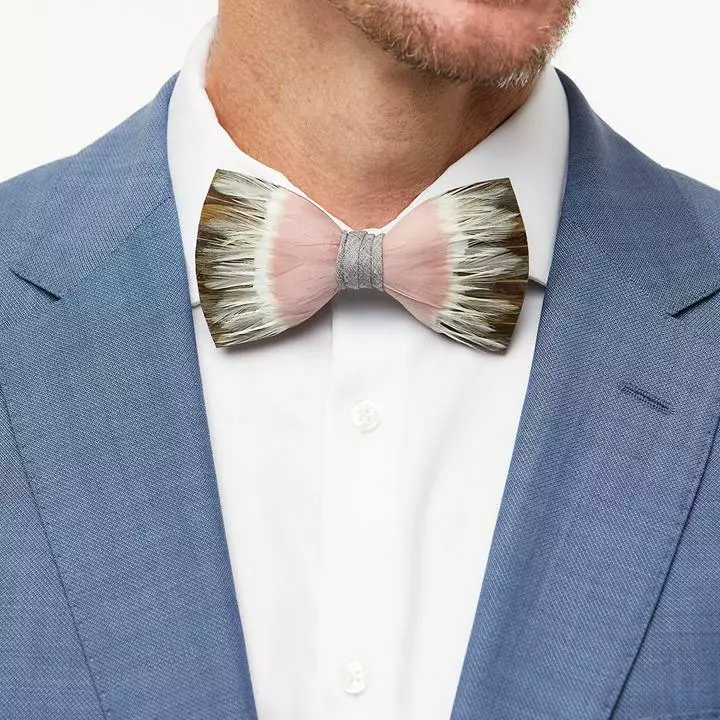 - Feathers for bow ties are hand-selected, giving each finished piece unique coloring.