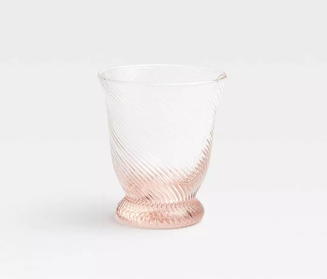 A twisted design gives this Tumbler a textural movement and a frosted look. This sweetly stylish tumbler rests nicely in the hand, whether it’s filled with water, a seasonal cocktail, or a glass of fruity sangria.