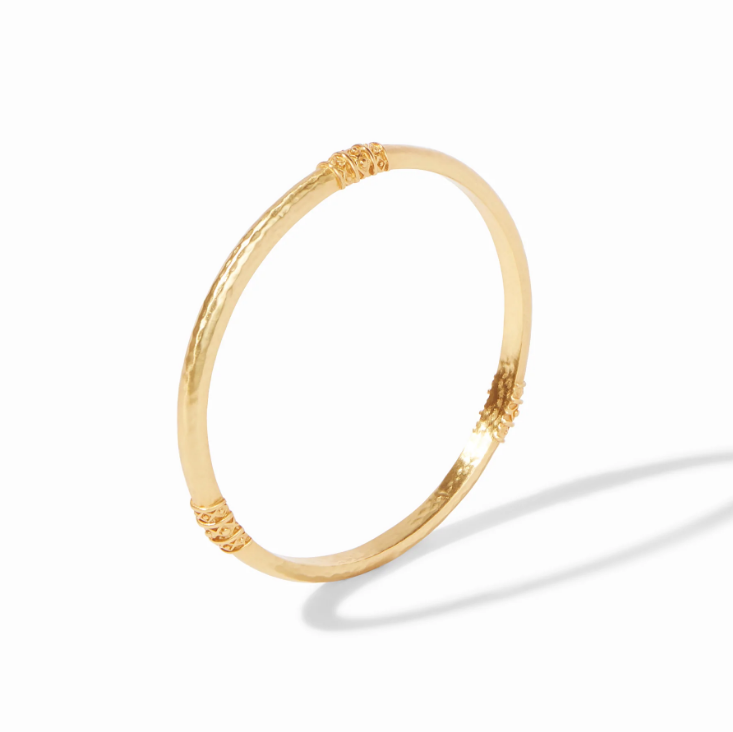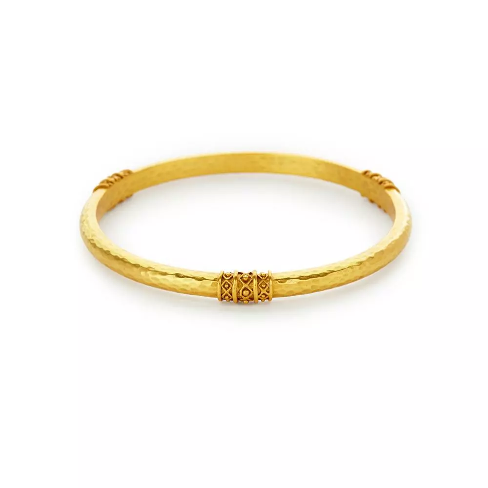 Classic bangle lightly hammered with a bead-in-diamond embellishment.