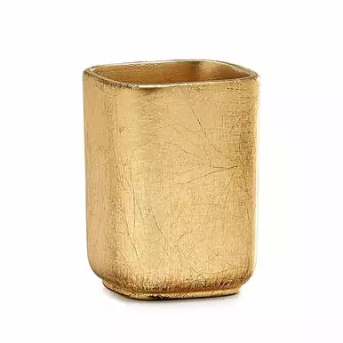 These handcrafted ceramic accessories are layered in gold leaf and lightly brushed with antique glaze. The appealing, softly rounded shapes lend a note of simplicity. These versatile pieces pair beautifully with our gold-leafed wood collections and many other styles. Made in Italy.
