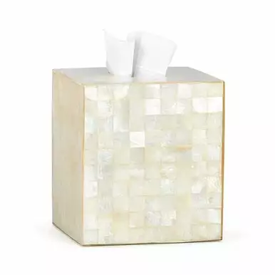 - Capiz Ivory Tissue Cover: 6.00″ x 6.00″ x 6.50″