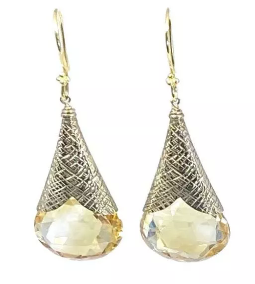 Brilliant large citrines set in 14k gold plated cones with 14k wires. 2” long