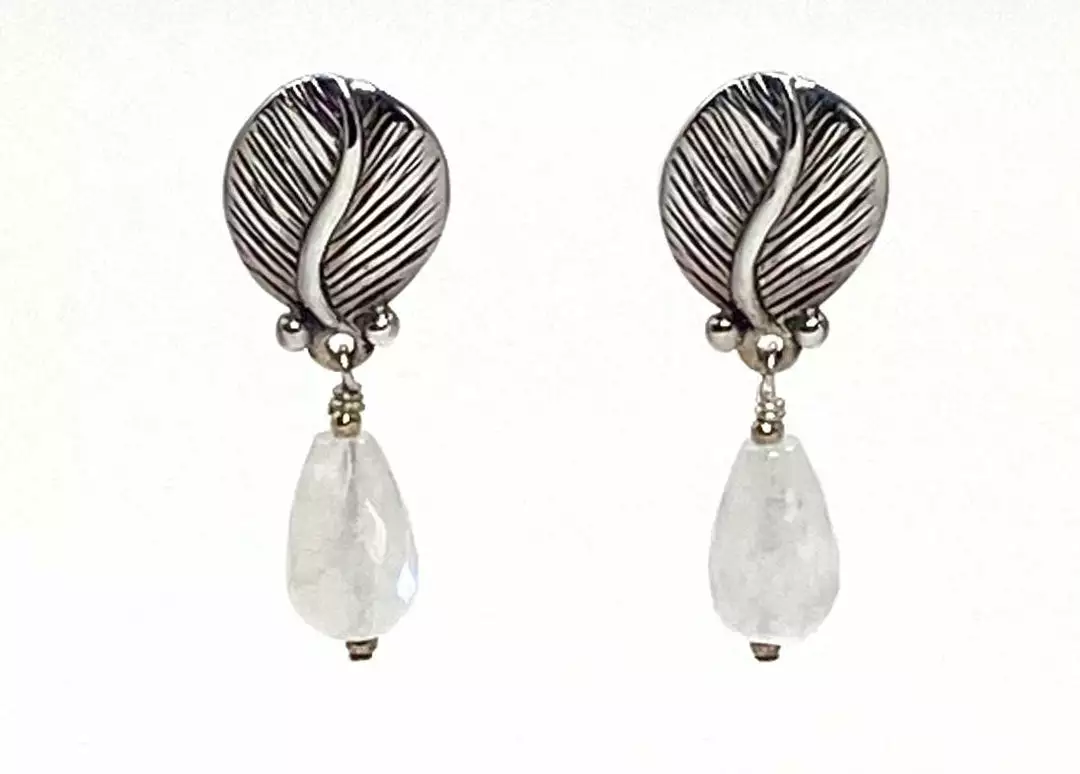 Moonstone tears with sterling silver leaf posts. 1 1/4”