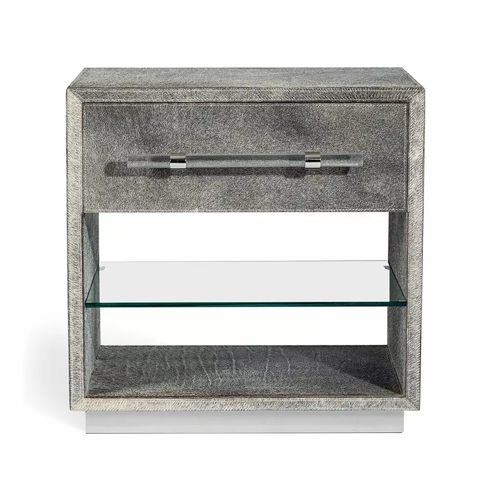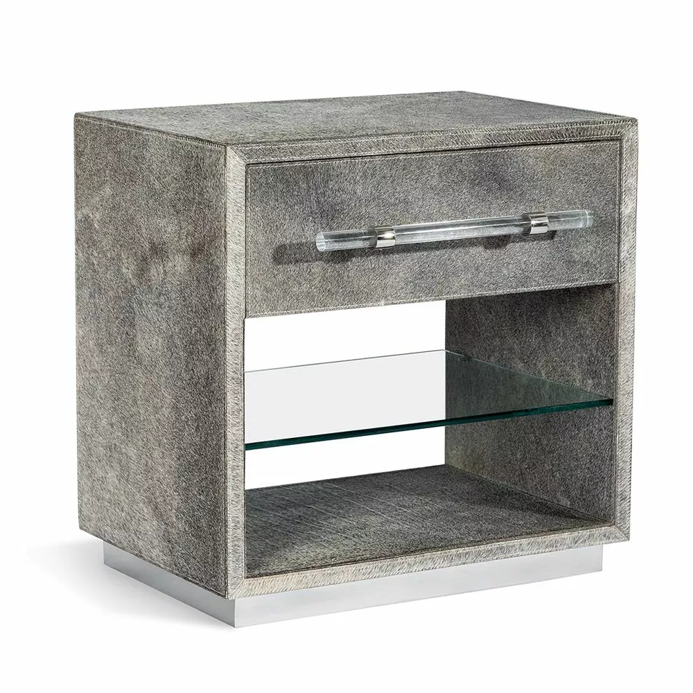 Boasting light natural hide with a clear acrylic pull, the Cassian Bedside Chest brings an unexpected, fabulous twist to a storage staple.