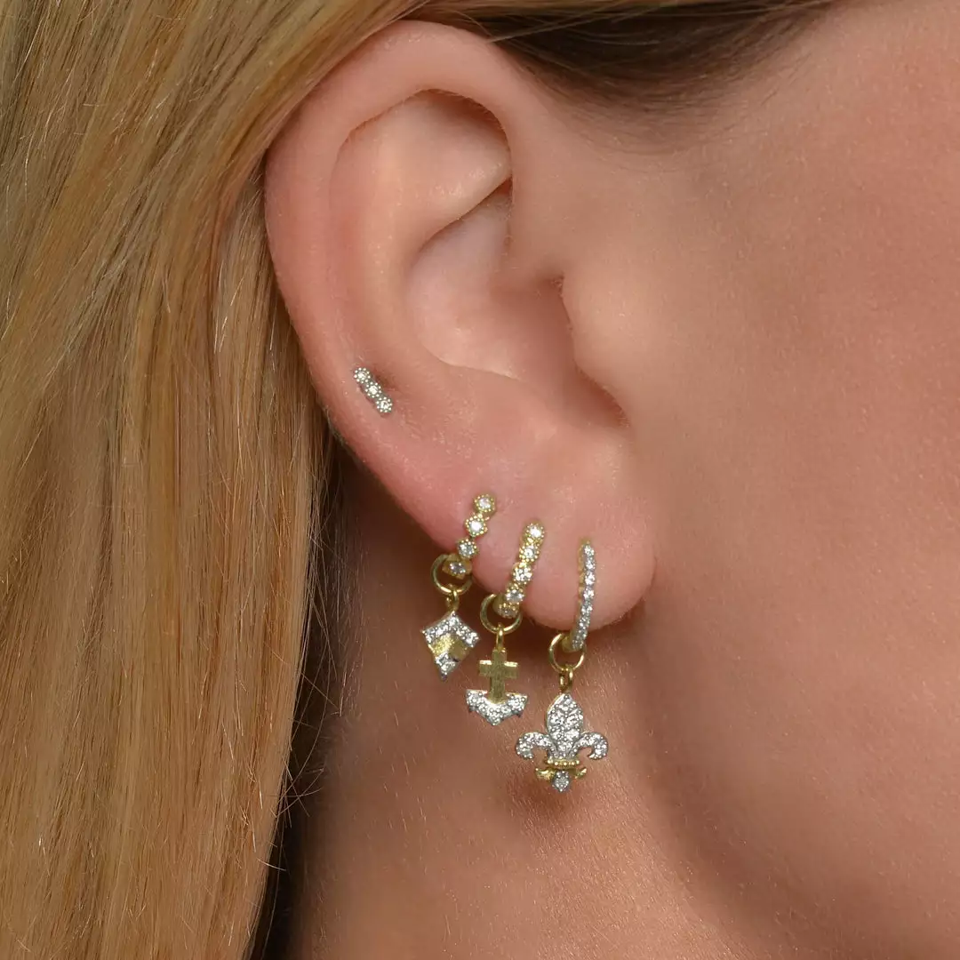 From the Provence Champagne Collection, the Delicate Provence Champagne Hoop Earrings feature bezel set round diamonds in 18K gold with the signature brushed JFJ finish.