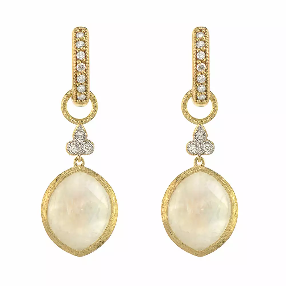 From the Provence Collection, the Provence Marquis Stone Trio Earring Charms features marquis faceted semi-precious gemstones set in 18K gold hanging from a bezel set diamond trio and accented by the signature brushed JFJ finish. Hoops and earring charms sold separately.