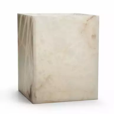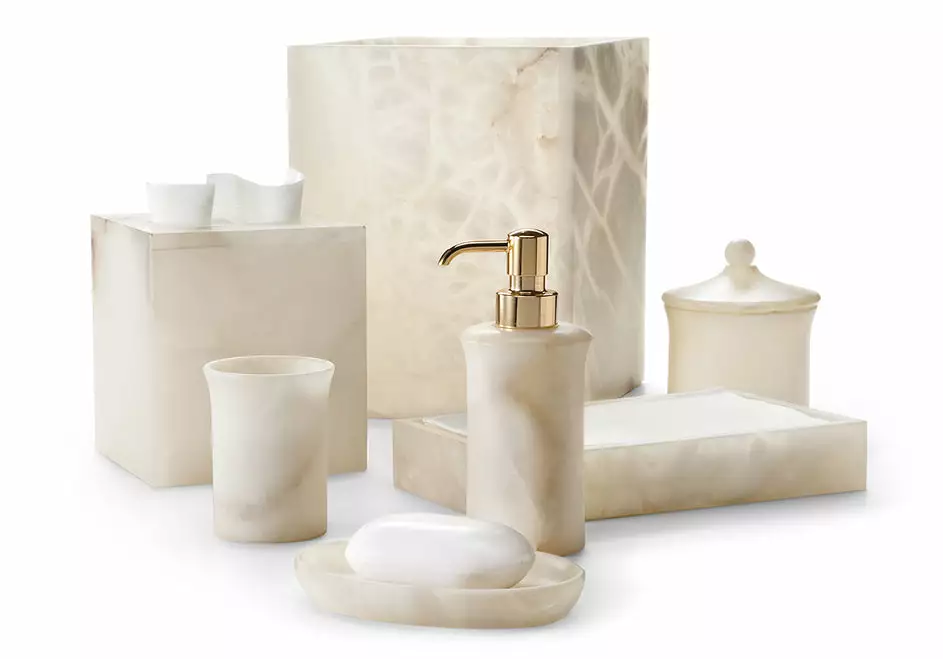 A beautifully understated bath accessory collection in luminous alabaster. The stone is softly tinted to produce the creamy ivory coloring. The subtle patterns in the stone are completely random and natural. Made In Italy.