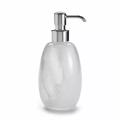- Bianca Pump Dispenser with Polished Nickel: 3.50″ x 3.50″ x 7.00″