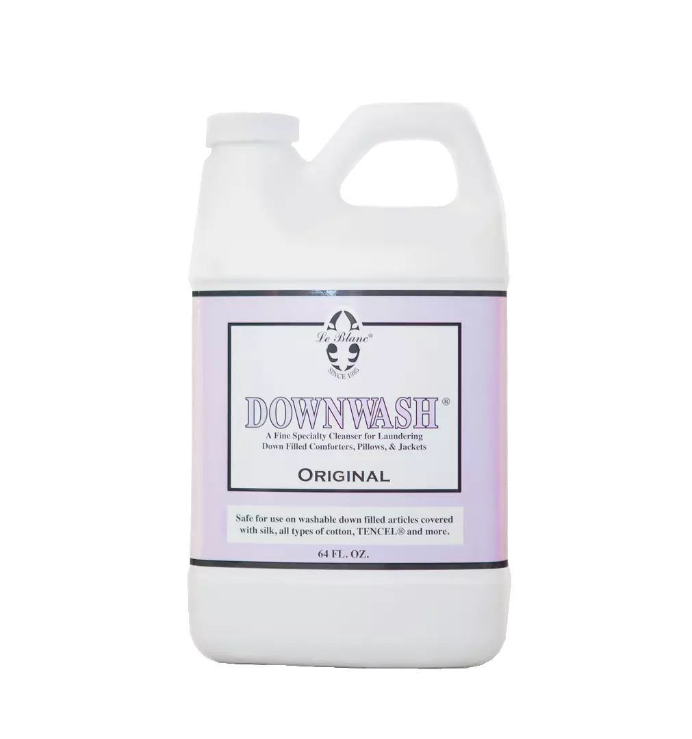 Downwash is an exceptional cleanser designed for all washable and colorfast down-filled fabrics. Le Blanc Downwash is formulated to protect the naturally resilient oils in down from drying out while preserving its loft.