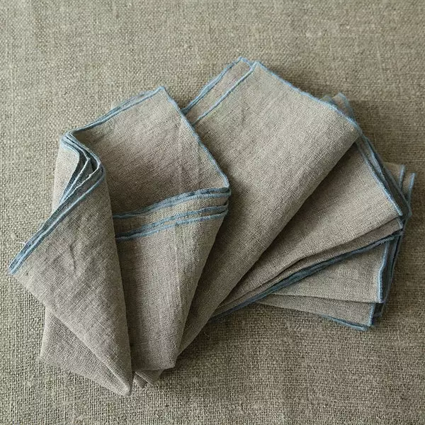 These stylish napkins are crafted from 100% pure natural coloured linen and edged with delicate embroidery in stone blue. They will bring a timeless elegance to your table, whatever the occasion.