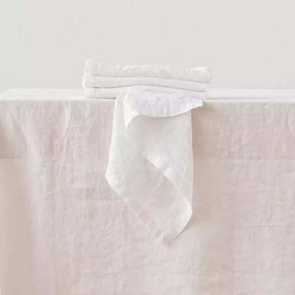 Soft lightweight pure linen napkin in optical white to add some festive experience to your mealtimes. Prewashed during production process to make it super nice to touch. Also in rosa, white, oatmeal and even more colors. Matching tablecloths and runners available