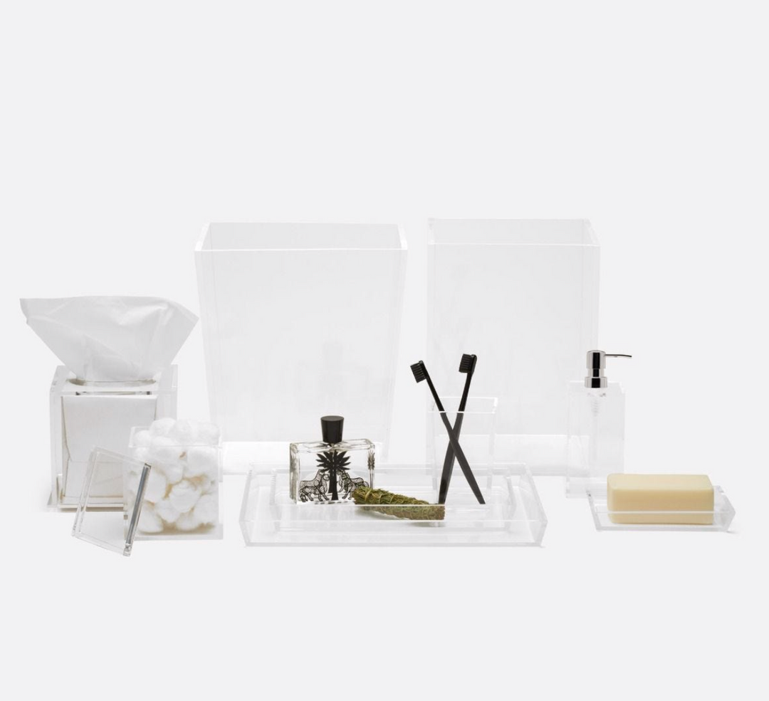 A beautiful clear heavy acrylic that looks gorgeous in any bathroom.
