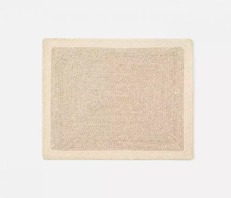 Two colors of cotton jute are texturally woven in the Shia placemat, giving it a rustic charm and two-tone aesthetic.