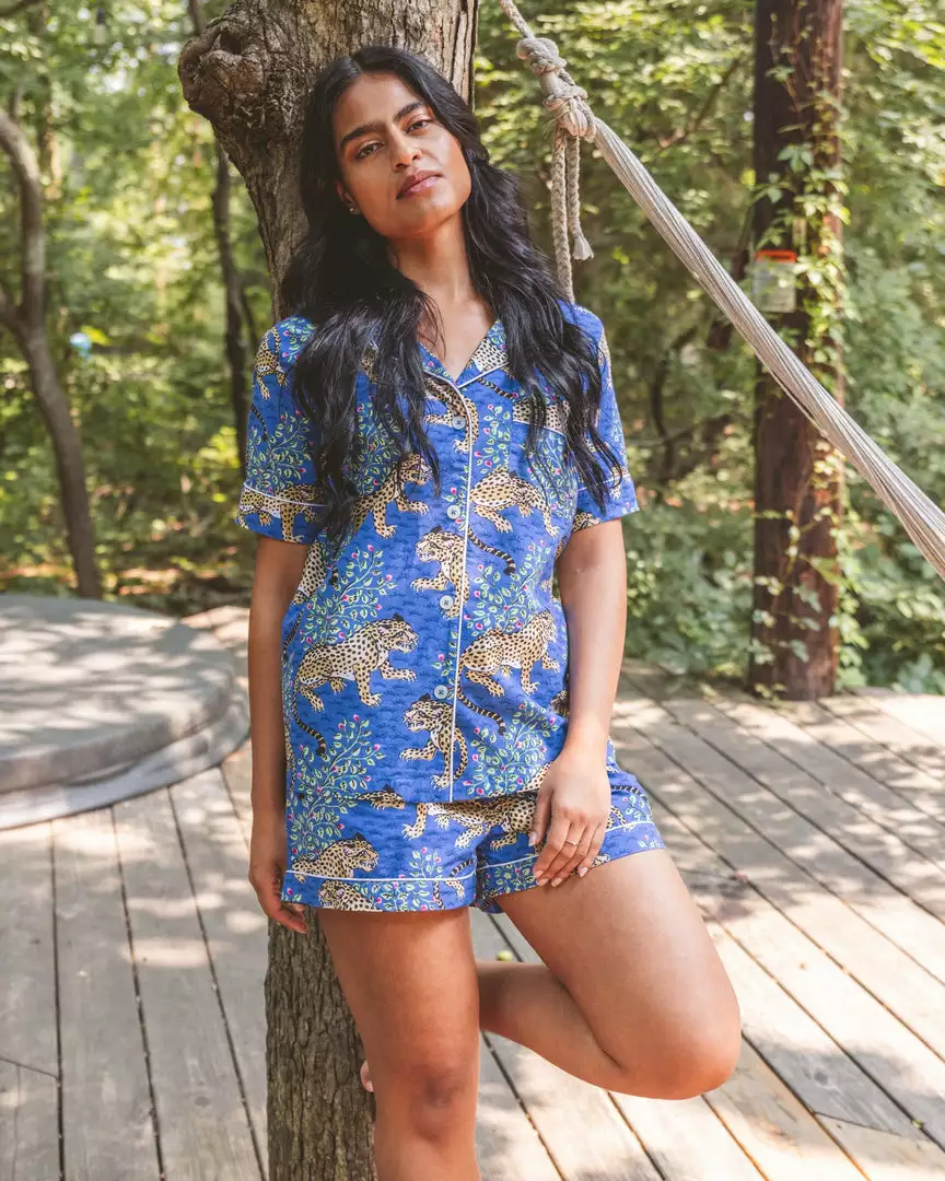Made with cotton that gets softer with every wash, this short-sleeve top and shorts matching leopard PJ set comes in a range of colors to suit every style and mood. From serene and calming Blush or Indigo to vibrant and earthy Forest and Scarlet, our breathable and lightweight cotton beckons you to let go of the chaos of every day, sit back and unwind.