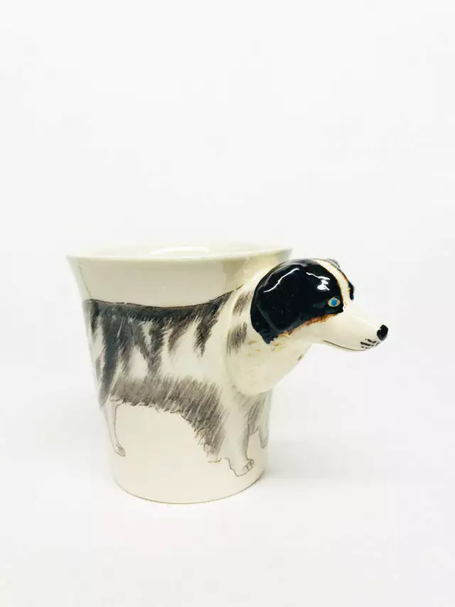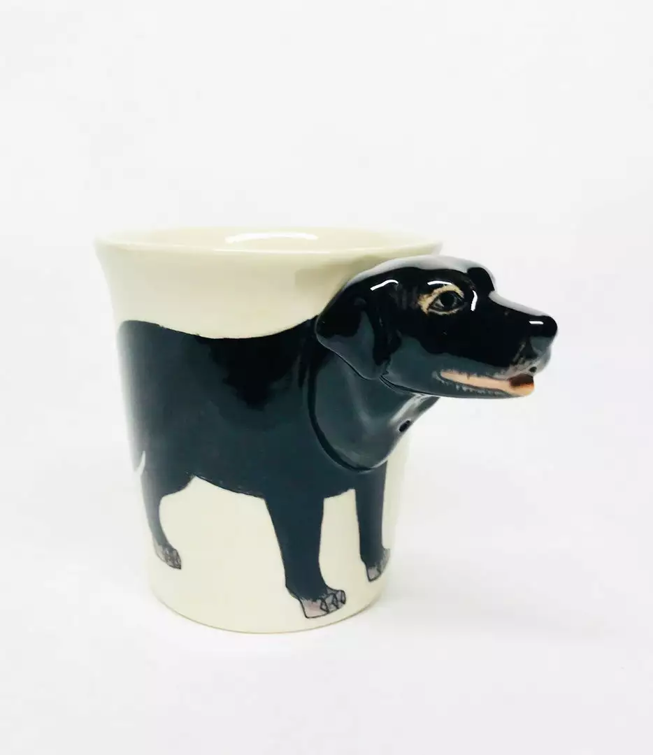 All of our dog mugs are hand painted, microwave and dishwasher safe. Prop 65 compliant. Great for soup as well as coffee and tea and make good containers for toothbrushes, makeup and pens too. They are the size of a typical coffee mug.