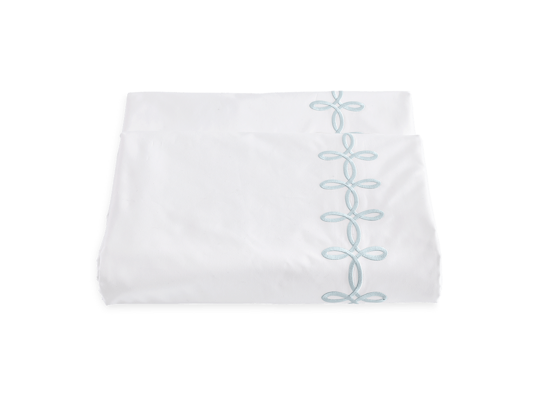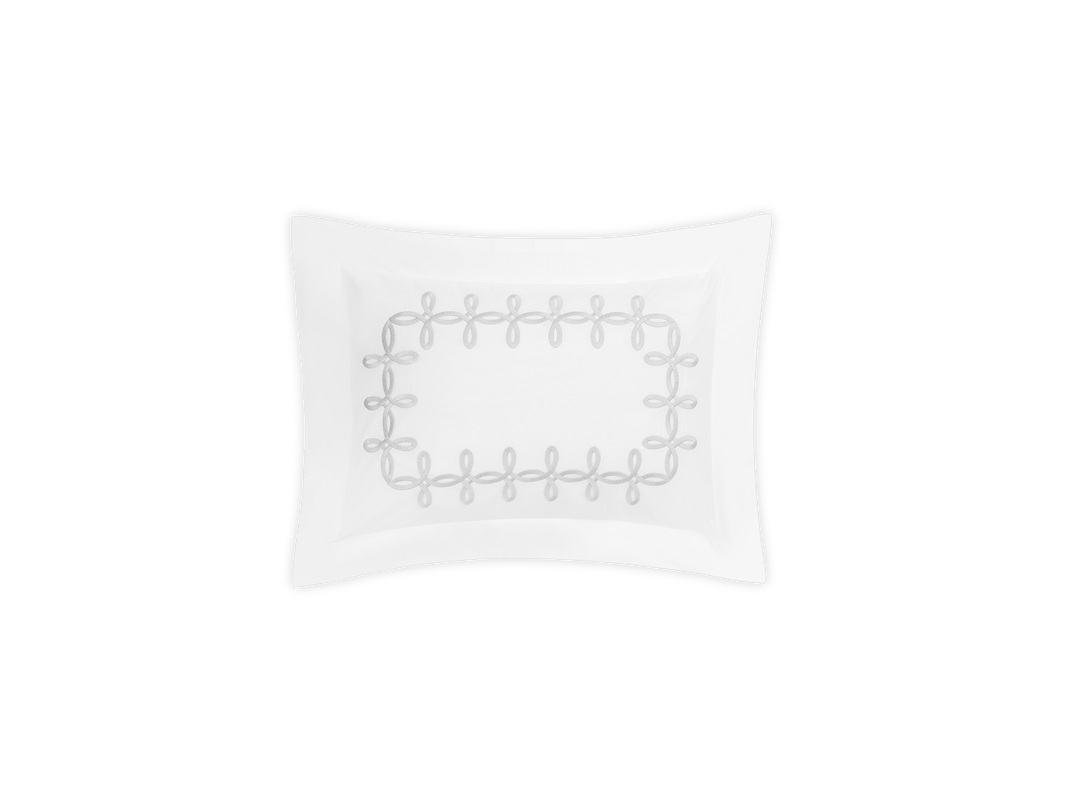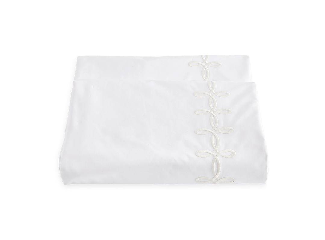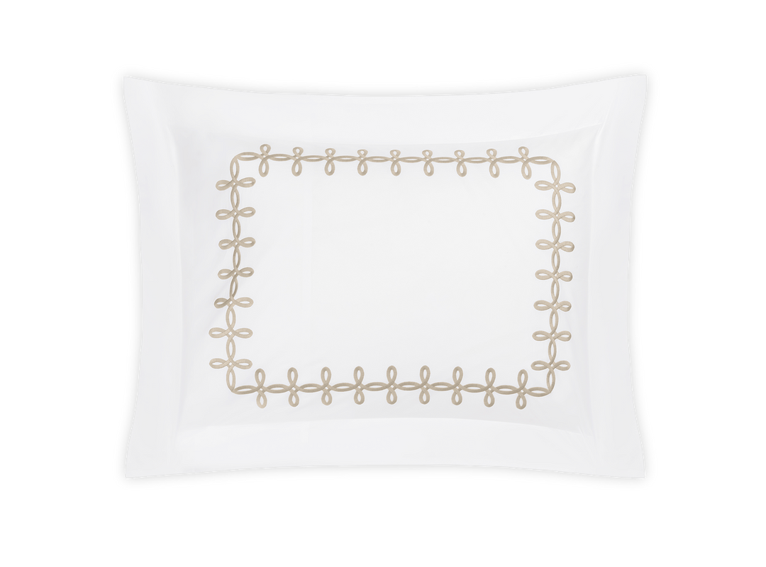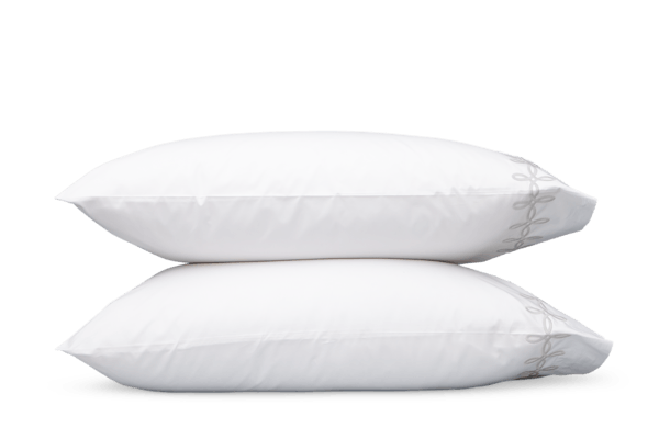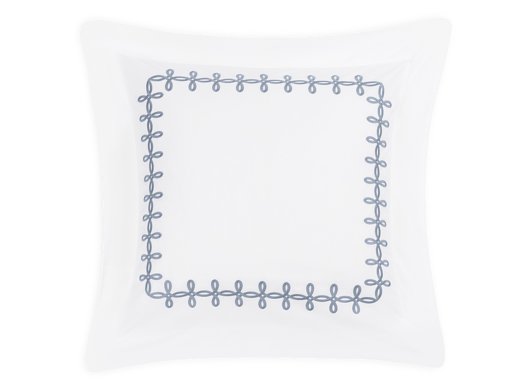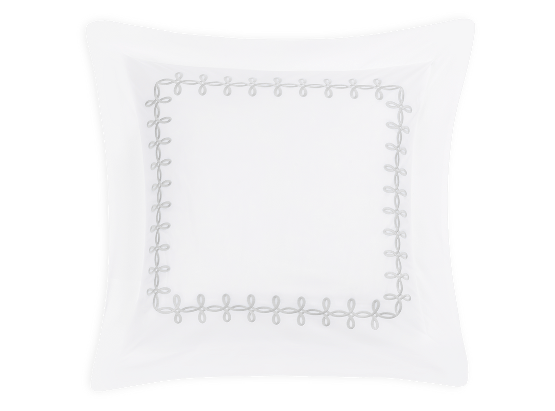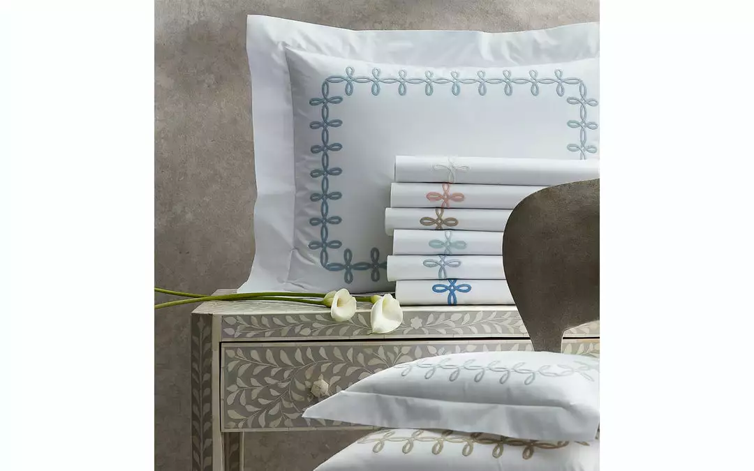 Adorned with a Grecian-inspired embroidery of graceful knots on our 500 thread count Luca Egyptian cotton percale sheeting from Italy, Gordian Knot imparts a striking, European charm to your sleep space.