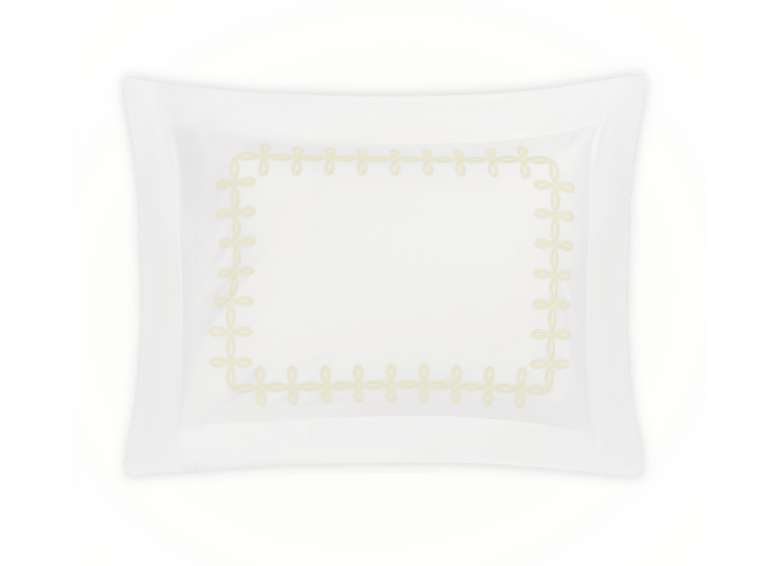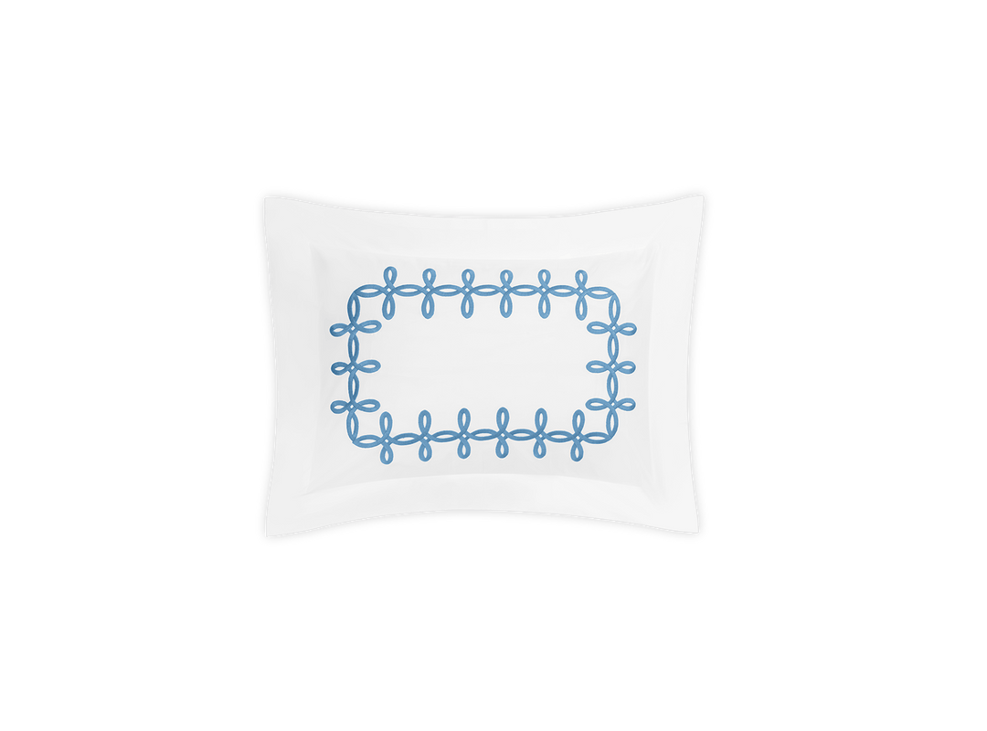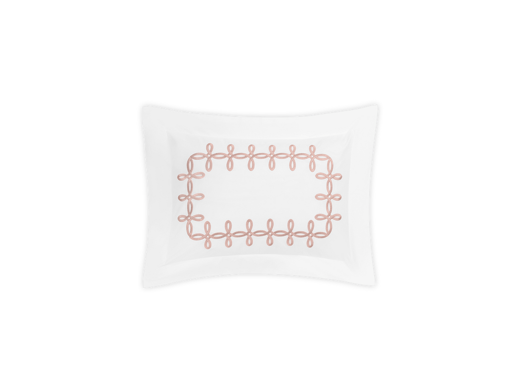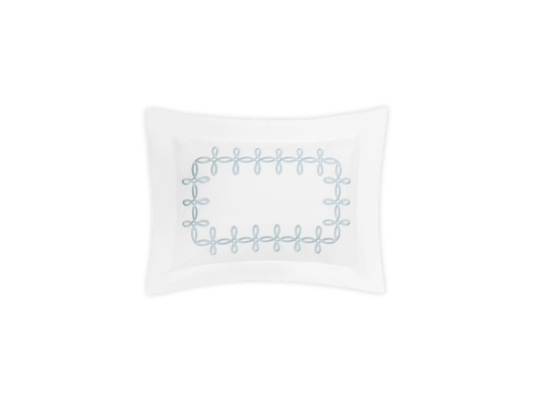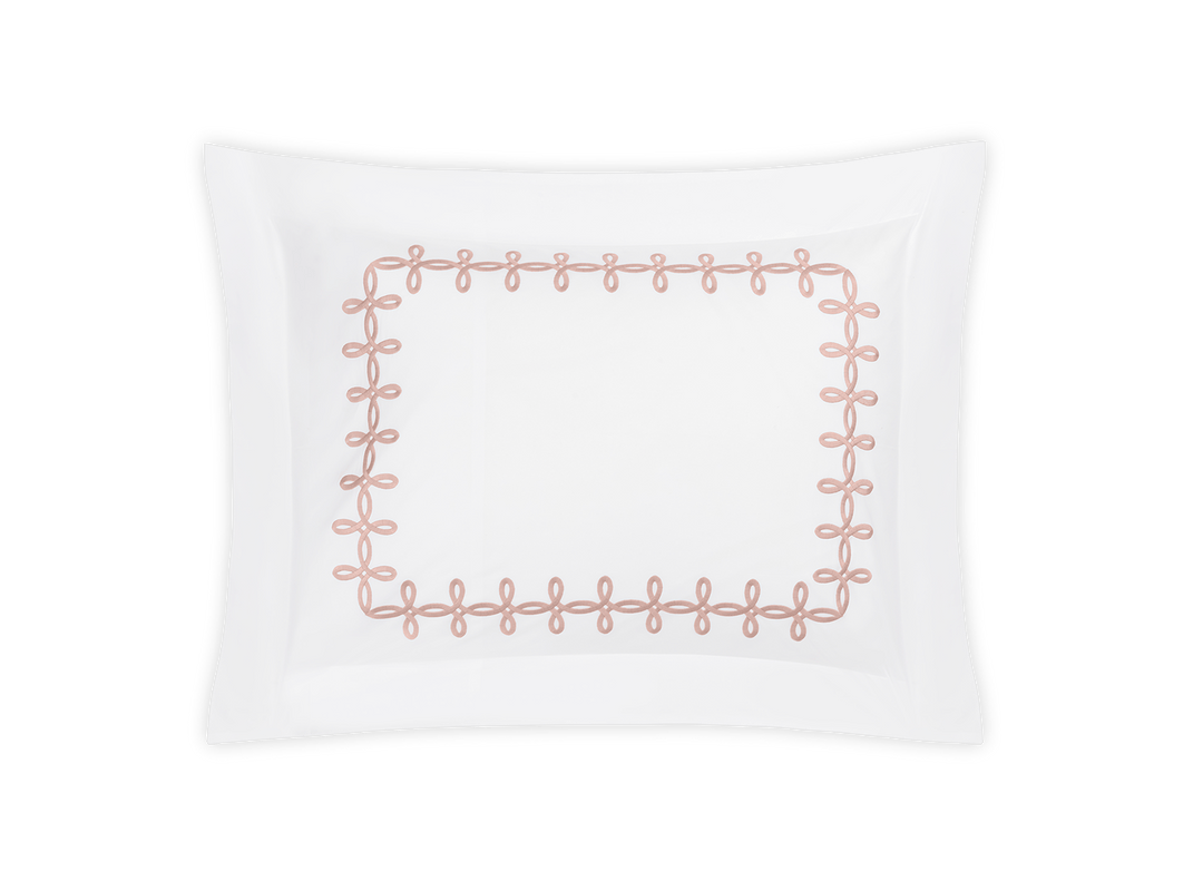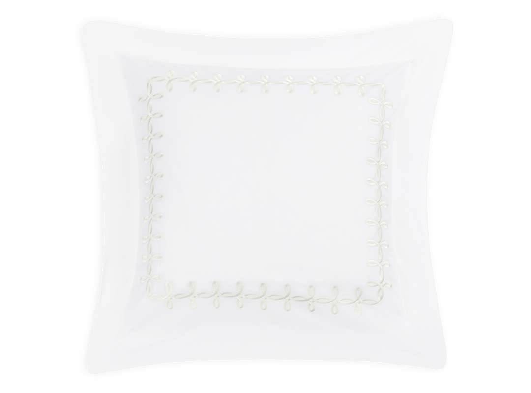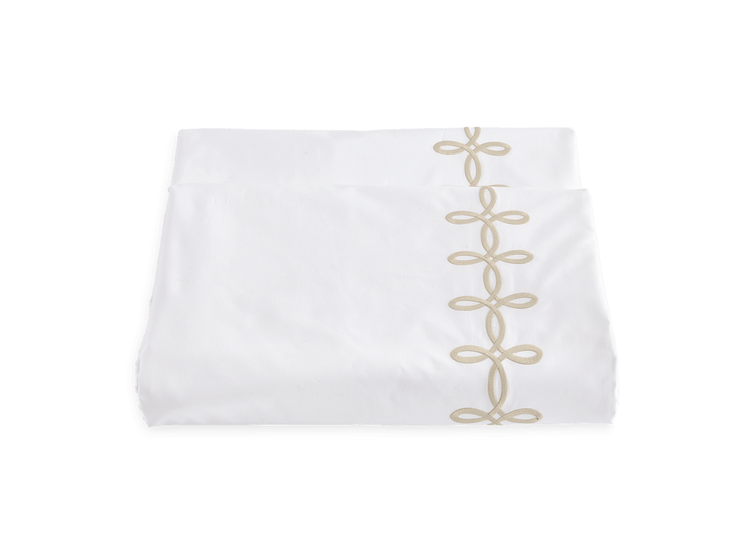 Adorned with a Grecian-inspired embroidery of graceful knots on our 500 thread count Luca Egyptian cotton percale sheeting from Italy, Gordian Knot imparts a striking, European charm to your sleep space.