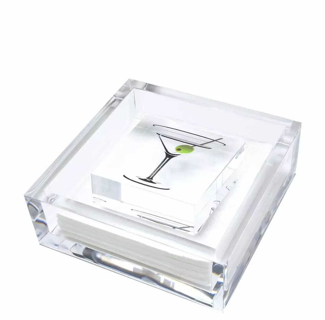 A Fun, Martini Glass printed cocktail napkin weight.