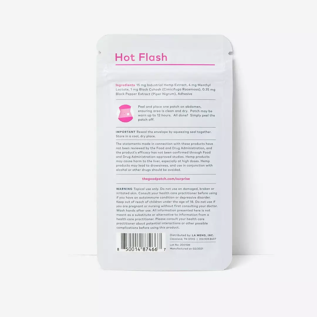 Is it hot in here? This patch is complete with 15 mg Premium Hemp Extract, Black Cohosh and other key ingredients.