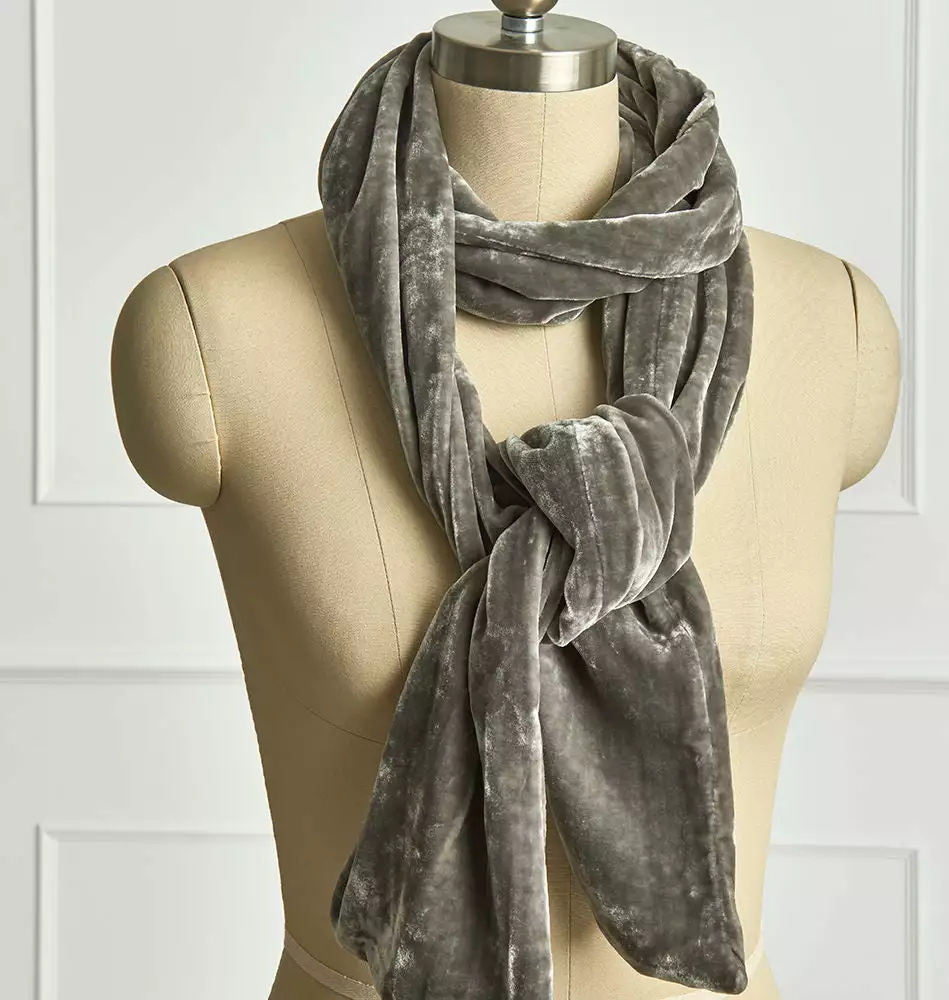 Vintage Velvet is one of our favorite fabrics because of the way it picks up the light. You’ll want a fabulous scarf in every color. Finishing at 7″ wide and 80″ long, this reversible scarf is easy to wear under a coat, or as part of an outfit.