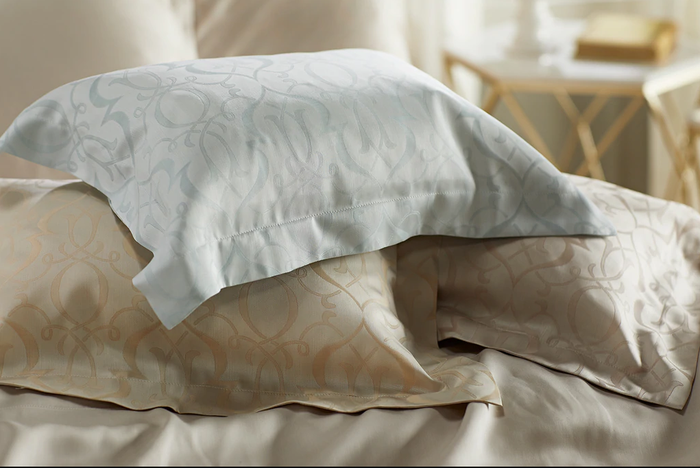 The Agadir by SDH Legna is an ornate and elegant jacquard pattern with an exquisite feel. Its artistry is reminiscent of the coastal palaces along the North African trade routes crossing Morocco in ancient times. Envision yourself enjoying a third of your life sleeping on these beautiful sheets made with Legna fabric. You will enjoy this luxury bedding created from the finest of European linens.