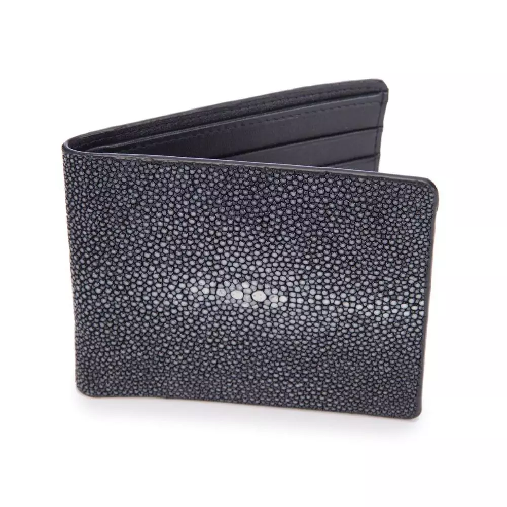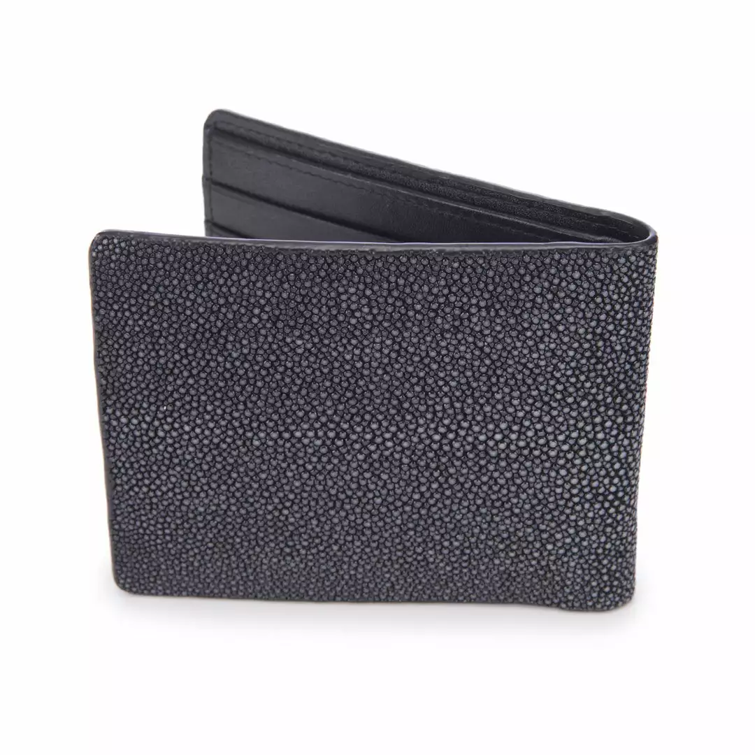 Genuine shagreen slim billfold, lamb skin interior lining.