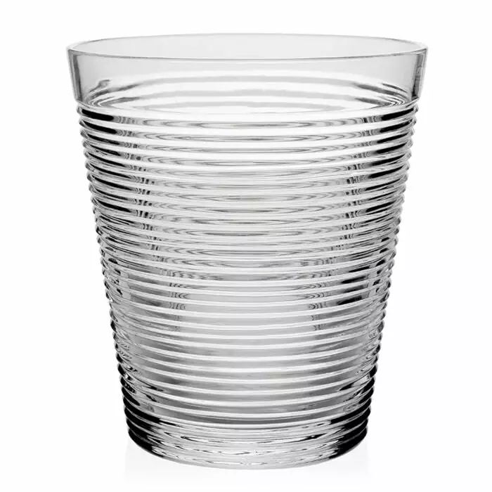 The Gigi Barware Collection is a contemporary grouping of barware using artfully crafted horizontal cutting on the body of each piece. The look is fun and jazzy – and the contents of the glass create a magical visual effect when the light shines through.